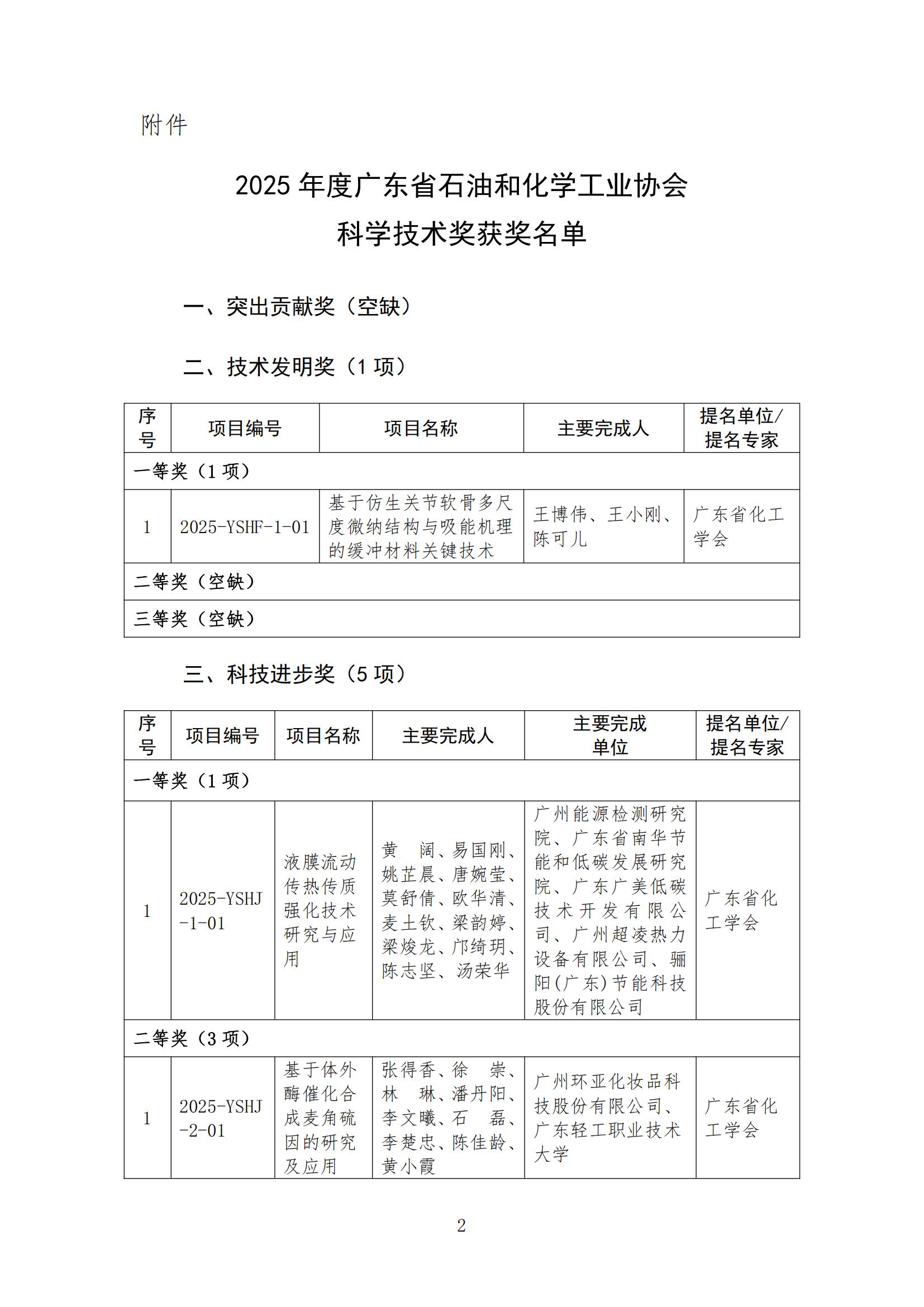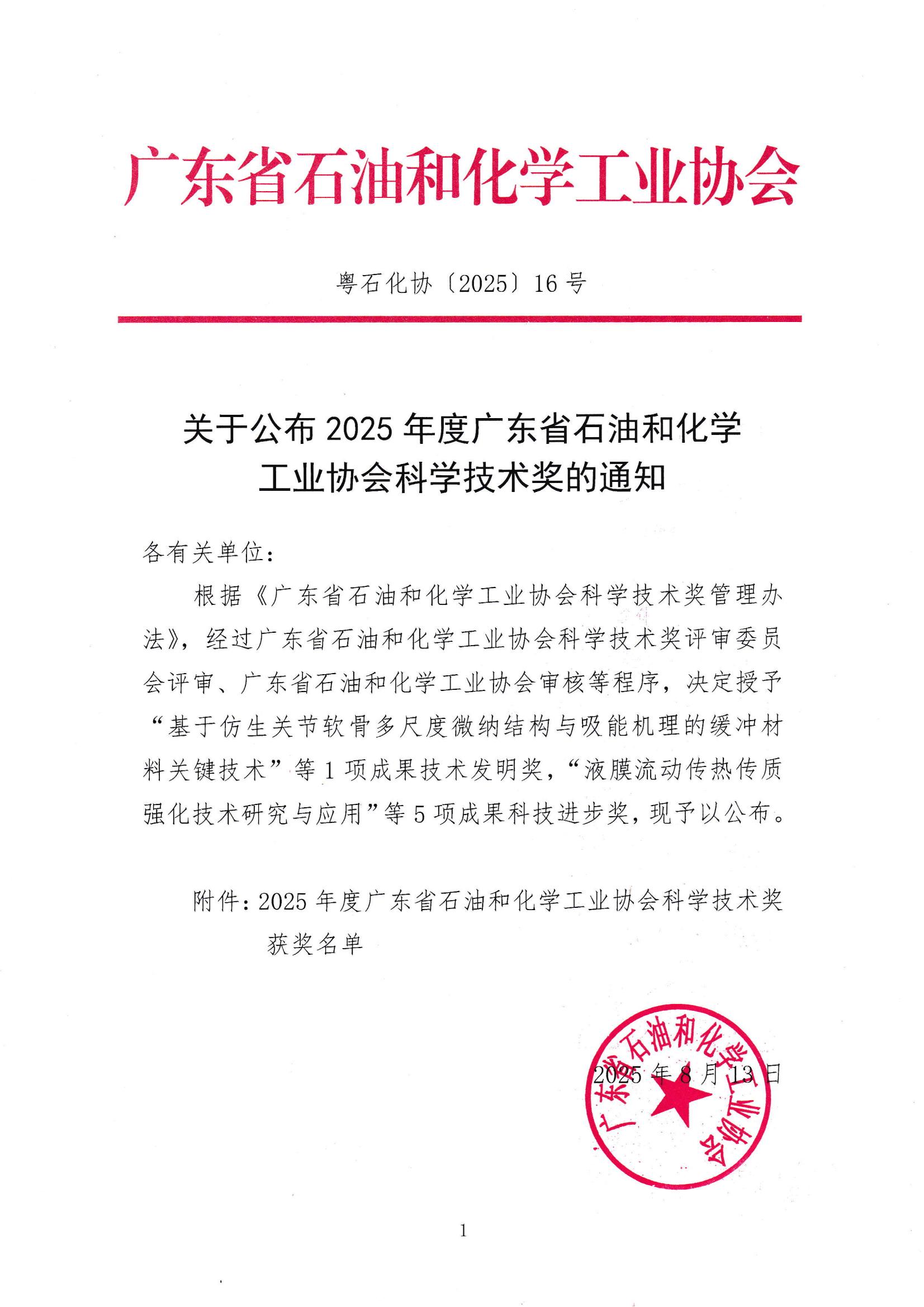 关于公布2025年度广东省石油和化学工业协会科学技术奖的通知