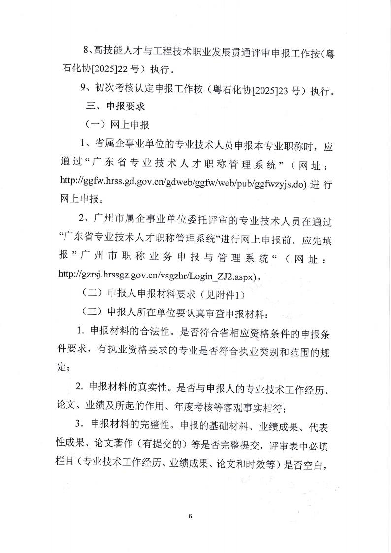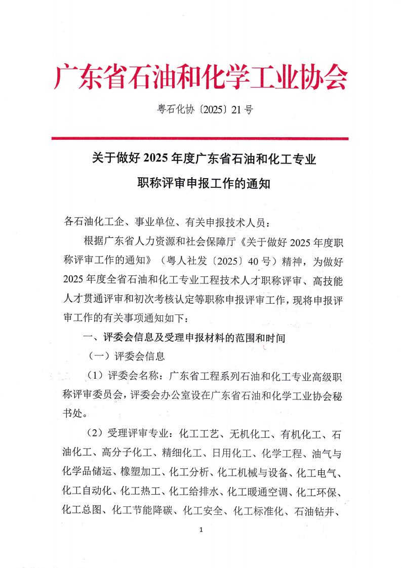 关于做好2025年度广东省石油和化工专业技术资格职称评审工作的通知(粤石化协[2025]21号)