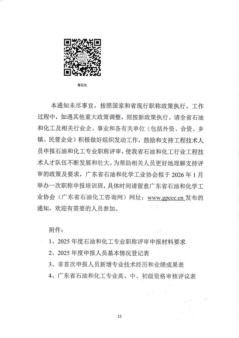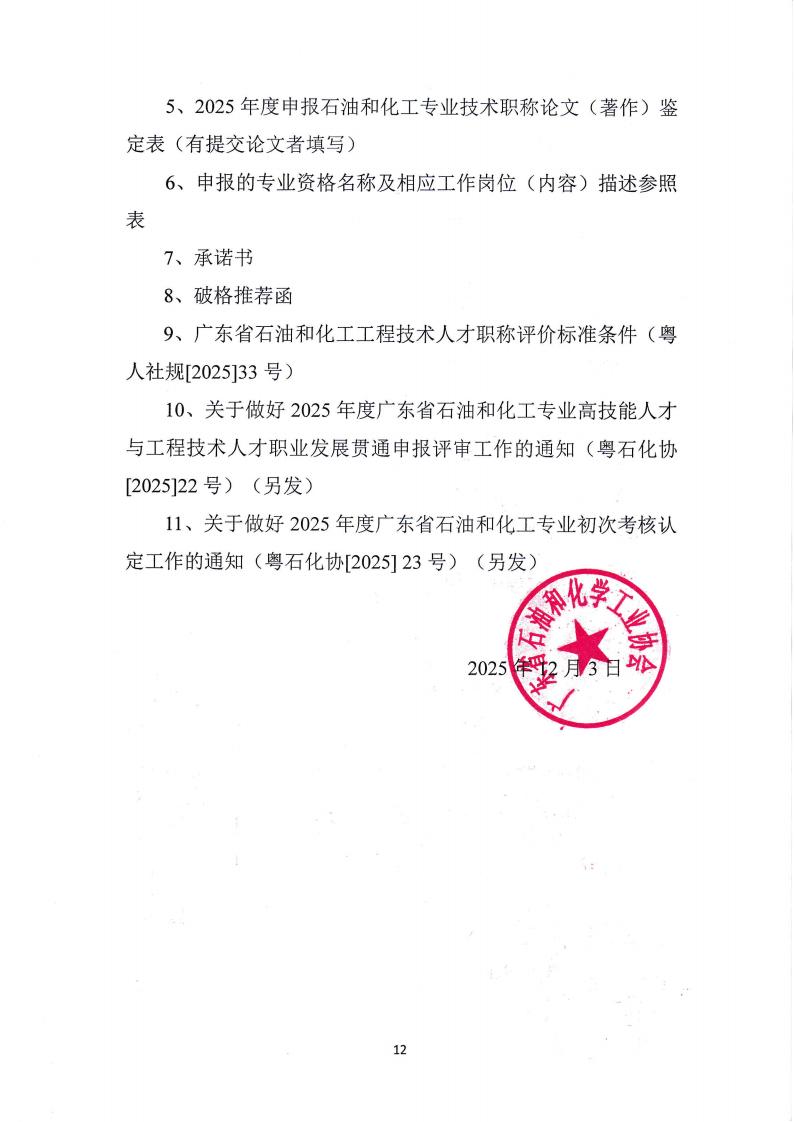关于做好2025年度广东省石油和化工专业高技能人才与工程技术人才职业发展贯通申报评审工作的通知(粤石协[2025] 22号)