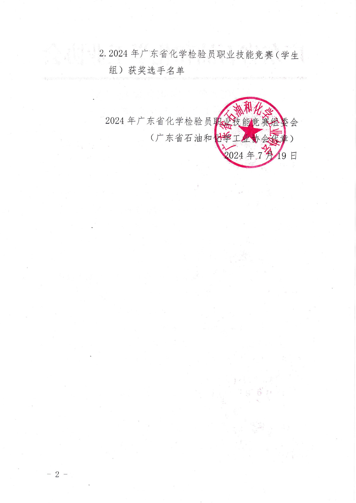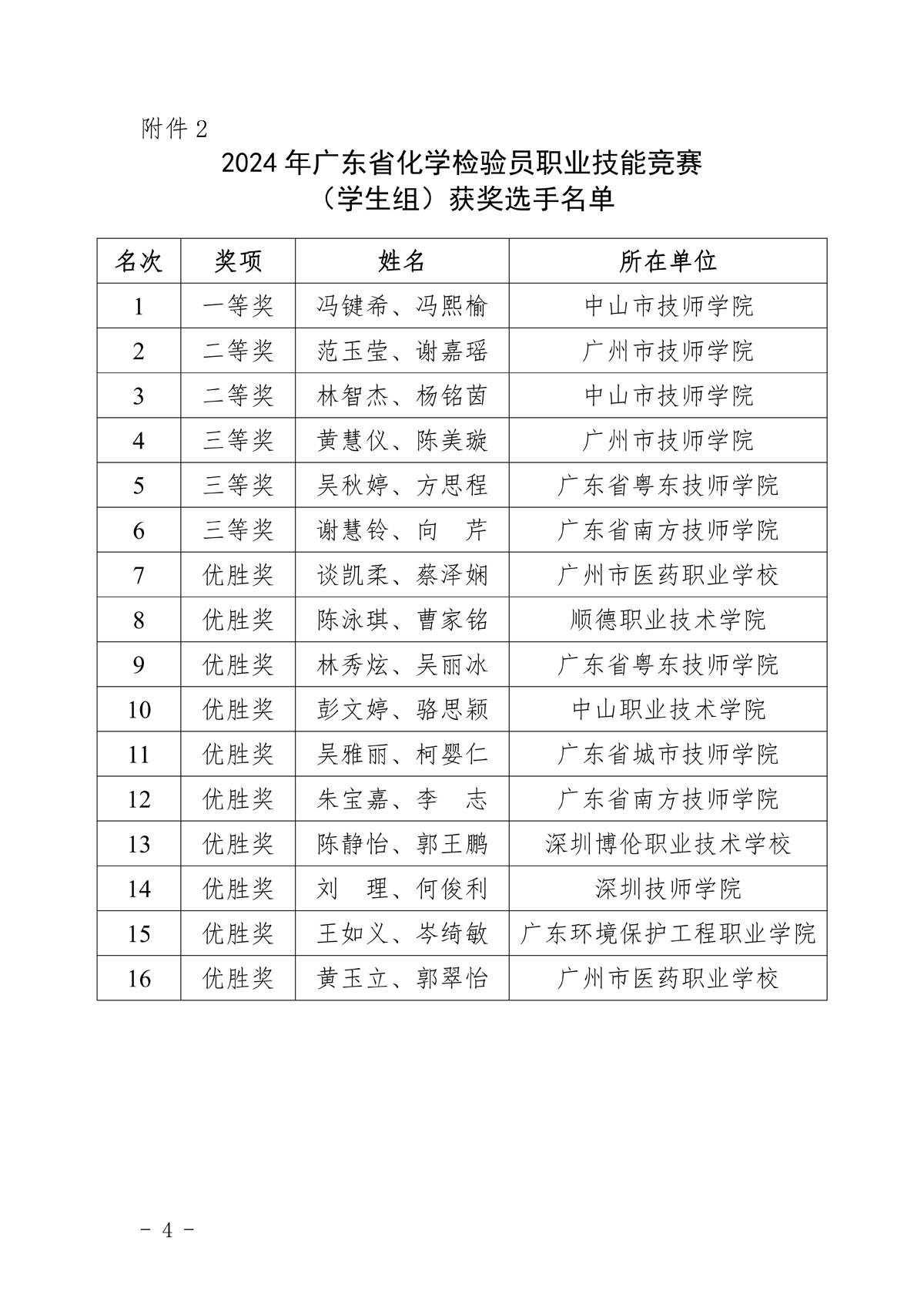 2024年广东省化学检验员职业技能竞赛获奖选手名单公示