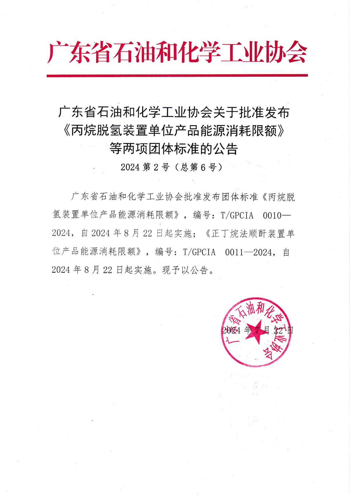关于批准发布《丙烷脱氢装置单位产品能源消耗限额》等两项团体标准的公告