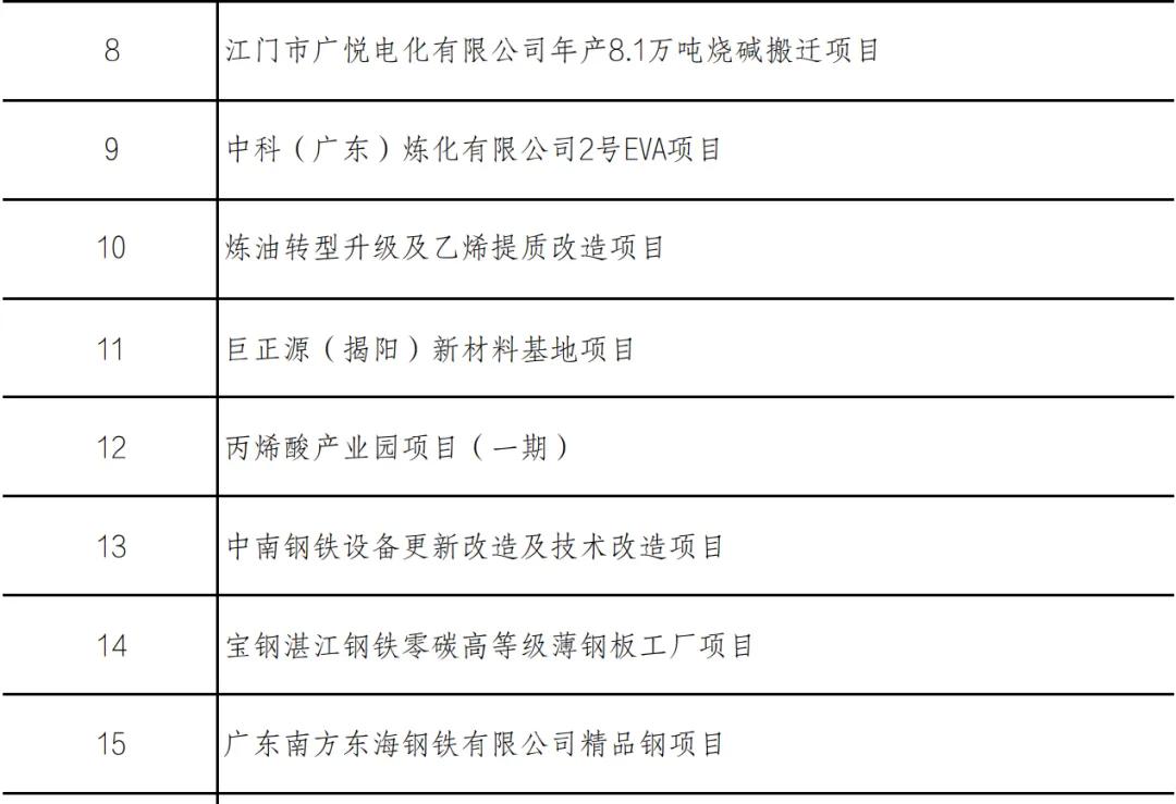 广东省2025年重点建设项目包含的炼化及新材料大项目